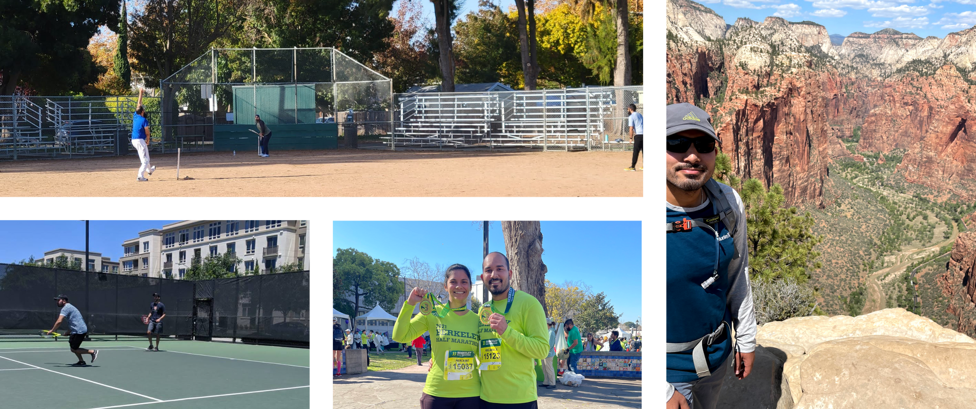 Outside of work I play cricket & tennis with my friends, run marathons with my wife and hike the beautiful national parks around the US.
